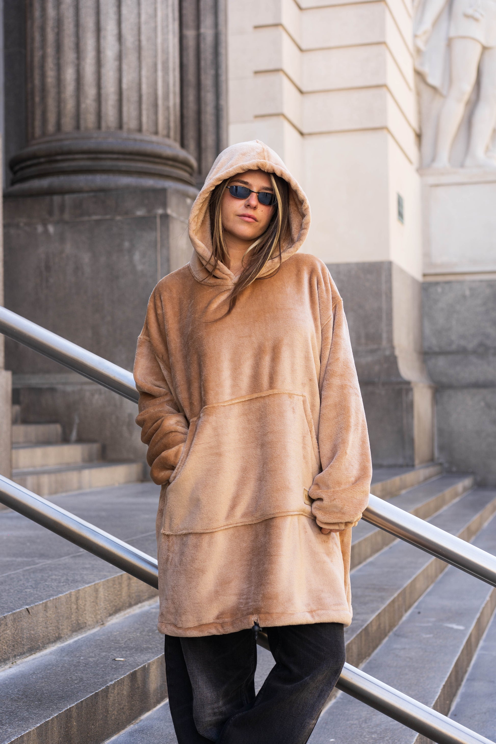 1 buzo, 2 formas de usarlo: Podes usarlo largo, o ajustarle la piola y usarlo corto.